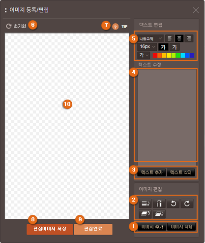 : 이미지편집 버튼을 클릭하면 이미지편집기가 레이어창으로 뜨며 원하는대로 이미지를 만들거나 변경할 수 있습니다.